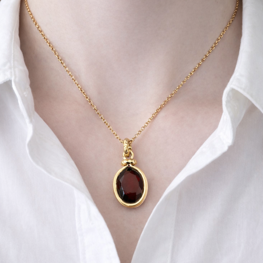 Garnet Drop Kolye, derin kızıl tonuyla koruyan, canlandıran ve gücü hatırlatan kadim bir taştır. Bu kolye, yalnızca bir aksesuar değil; boynunda taşıdığın bir efsane..