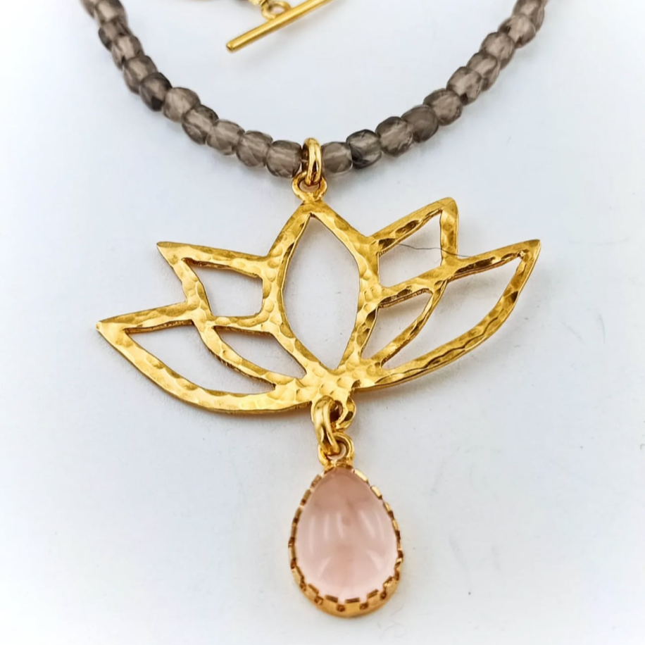 925 ayar gümüş üzerine altın kaplama lotus sembolü ve doğal taşların birleşimi…